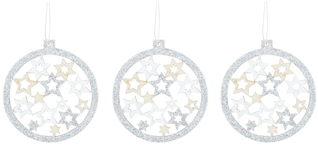 Koule dřevěná s glitry na zavěšení 7,5 cm, 3 ks
