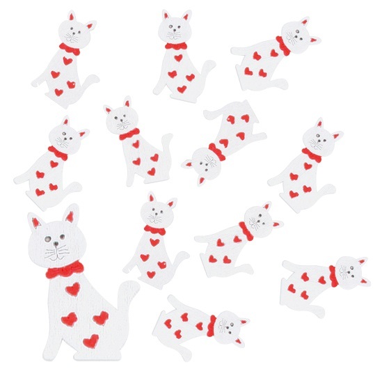 Kočka dřevěná s mašlí s lepíkem 4 cm 12 ks bílá