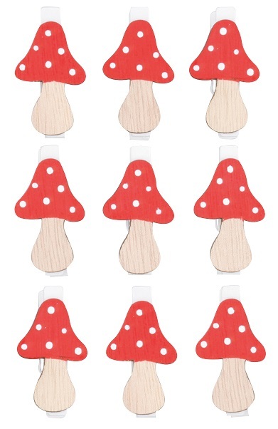 Dřevěné hříbky na kolíčku 4,5 cm, 9 ks