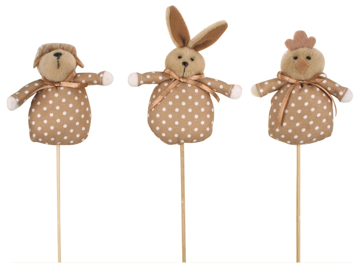 Zvířátko látkové hnědé zápich 9 cm + špejle