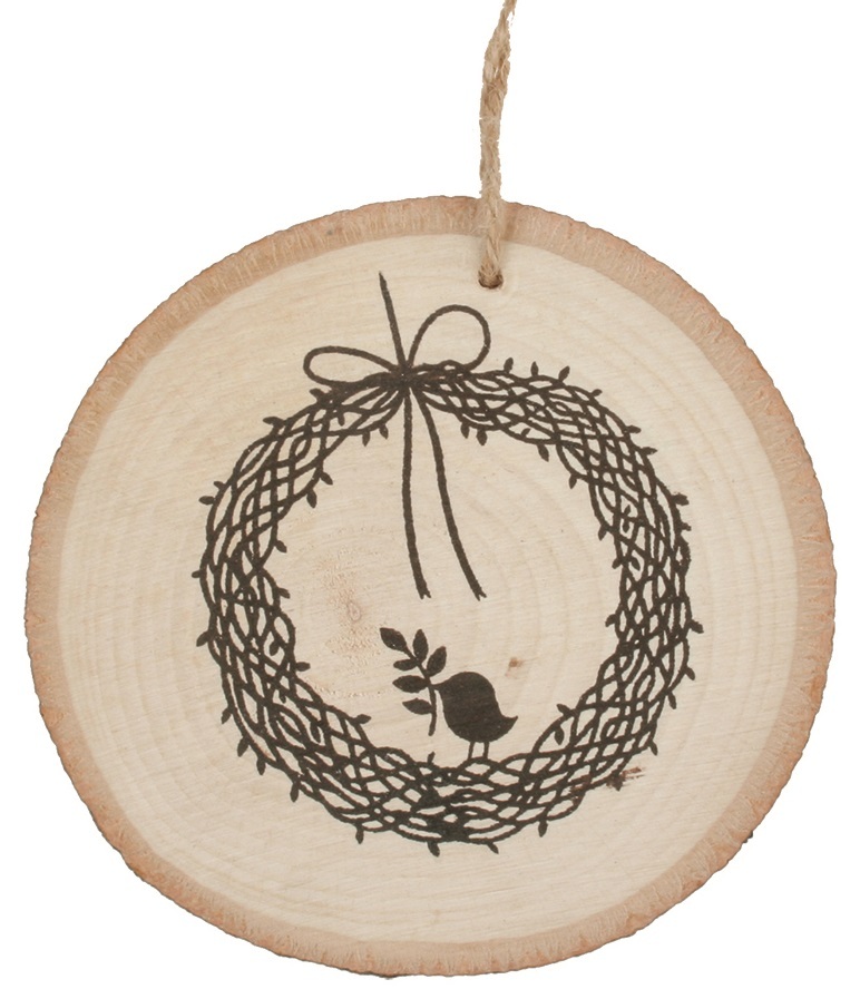 Dřevěná dekorace na zavěšení 10 cm, s věnečkem