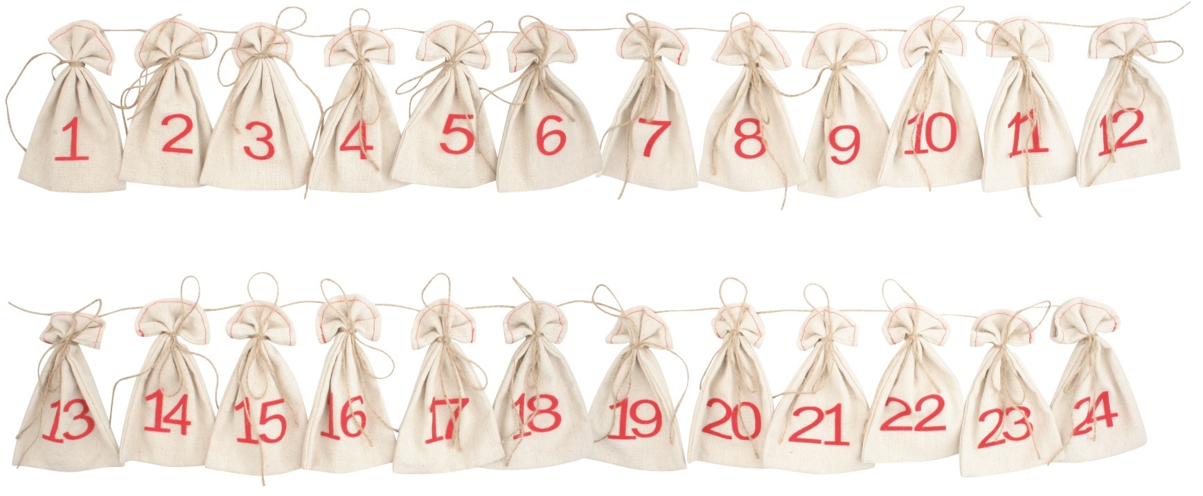 Zpříjemněte si čekání na Ježíška s naším adventním kalendářem. Do pytlíčků s čísly můžete vložit oblíbené bonbóny, čokoládky či menší hračky.
