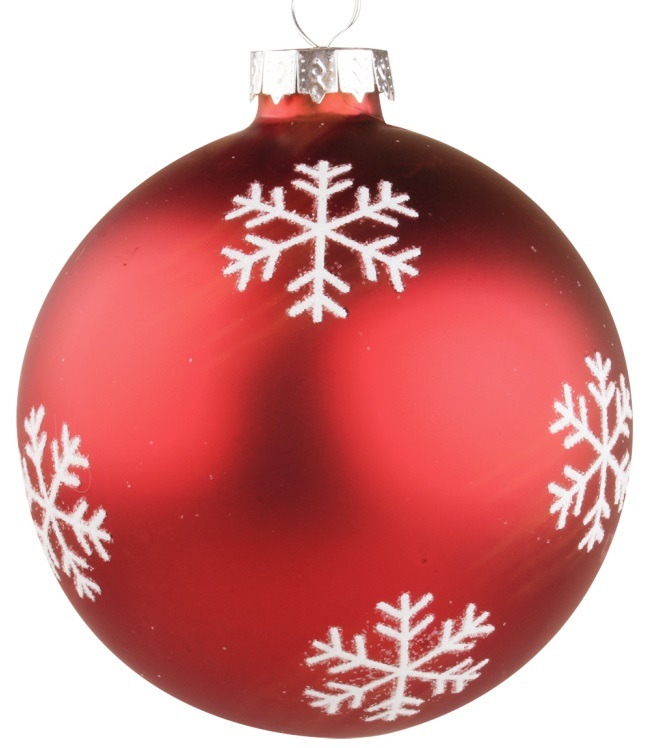 Sada skleněných baněk 8 cm, 4 ks v balení, červené s vločkami