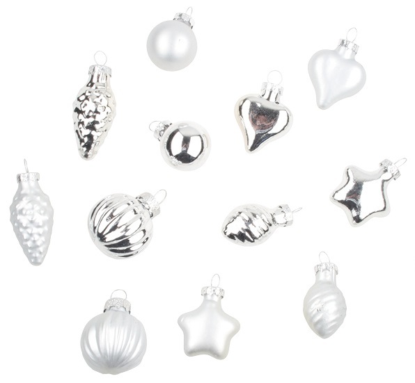 Sada skleněných baněk v krabičceBaňky využijete k dekoračním a aranžérským účelům.Můžete je použít ke zdobení věnců, vazeb nebo vánočních stromečků.Díky očku je snadno zavěsíte pomocí háčku (položka č. 2660) nebo mašličky třeba na větvičku.Krabička obsahuje 12 kusů baněk různých tvarů a motivů.