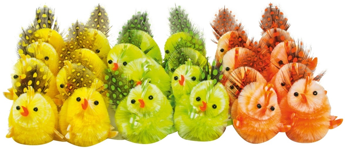 Barevná kuřátka v krabičceKuřátka využijete při zdobení věnců a vazeb, nebo můžete vložit do květináče s vyklíčeným obilím.Snadno přilepíte například tavnou pistolí.24 kusů v balení. prečítať celé