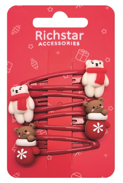 Vánoční sponky do vlasůVánoční sponky s motivem roztomilých medvídků oživí každý účes!Vhodné pro menší i větší parádnice.Čtyři kusy sponek na kartě.  prečítať celé