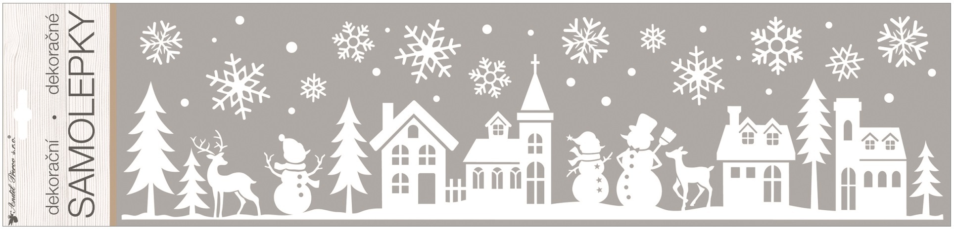 Samolepka bílá s glitry 15 x 64 cm městečko