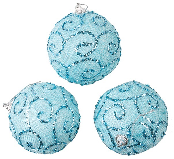Baňky modré s glitry 8 cm, 3 ks