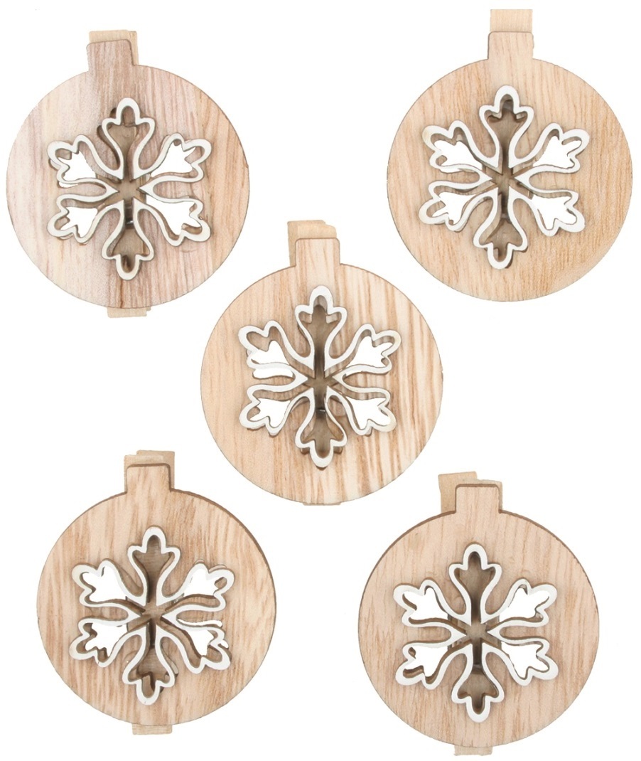 Vločka dřevěná na kolíčku 4,5 cm, 5 ks