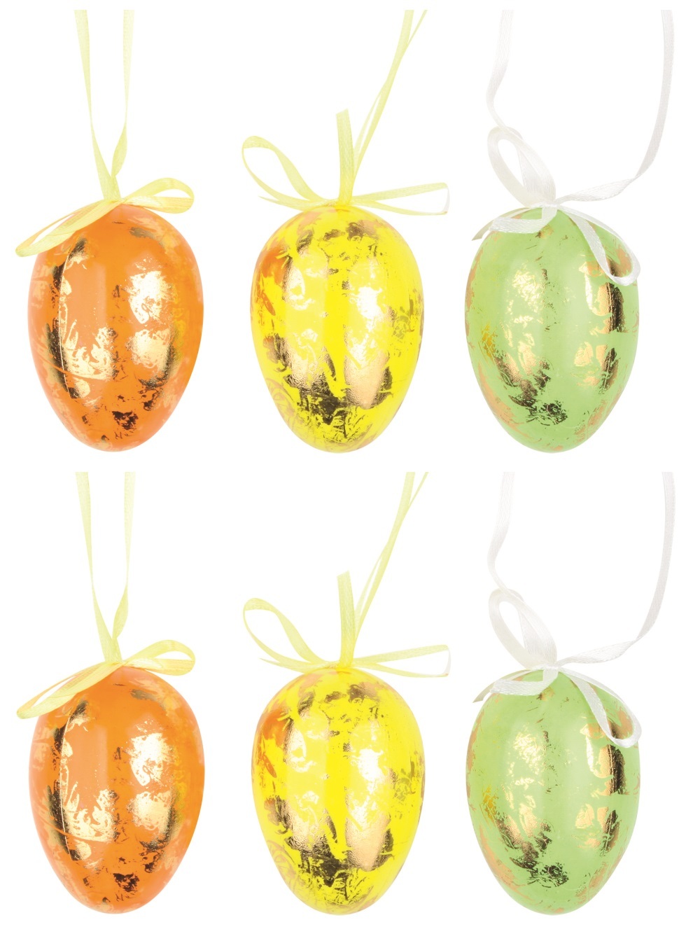 Plastová vajíčka na zavěšeníVajíčka využijete k dekorování věnců či vazeb, nebo je můžete jednoduše zavěsit třeba na větvičku.12 kusů v sáčku, tři barvy se zlatými šupinkami. prečítať celé