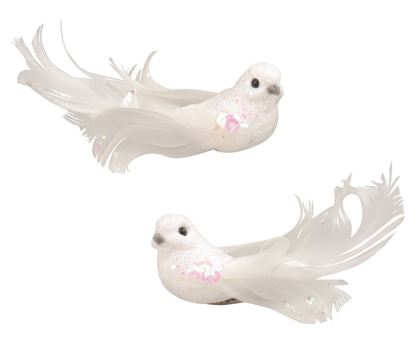 Ptáčci na klipu s glitry bílí 8 cm, 2 ks