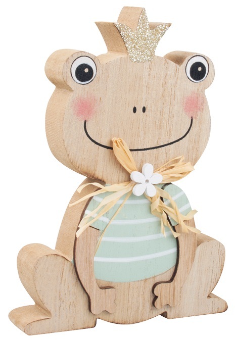 Žabka dřevěná s korunkou 10 x 14 cm na postavení