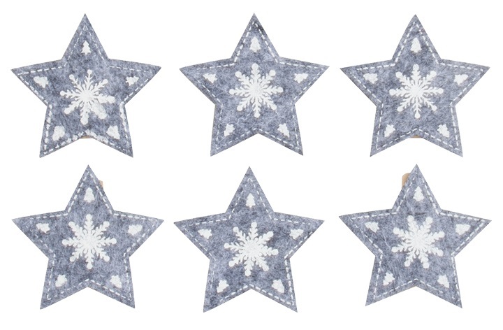 Filcové hvězdy na kolíčku šedé 5 cm, 6 ks