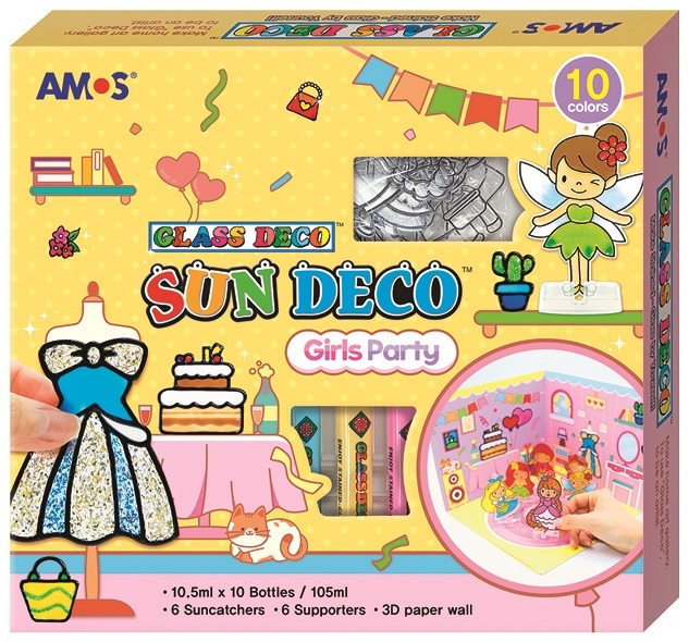 Barvy na sklo sada 10 barev 10,5 ml + 6 sklíček DÍVČÍ PÁRTY, 3D KULISY
