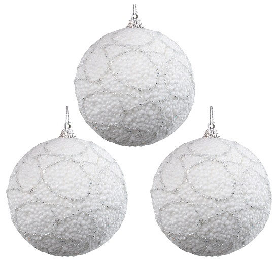 Baňky bílé se stříbrnými glitry, 8 cm, 3 ks