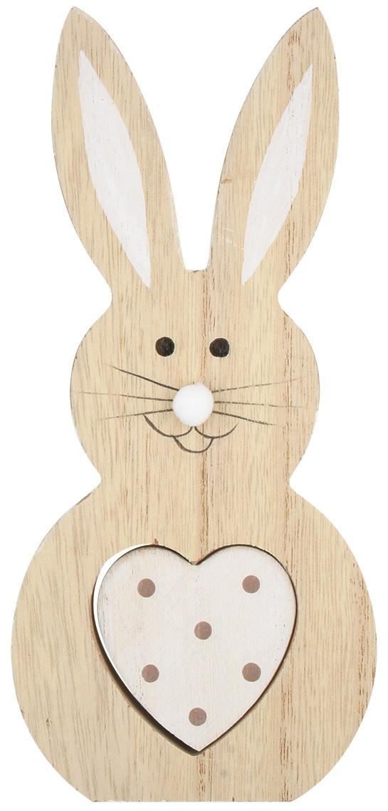 Zajíc dřevěný na postavení s bílým srdcem 16 cm