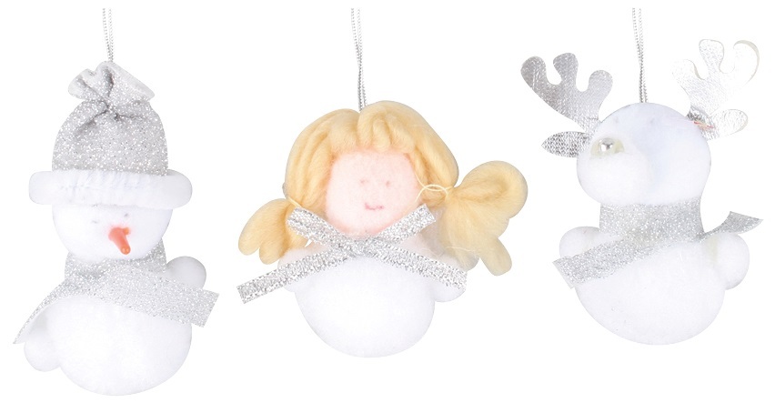 Postavičky plyš stříbrný dekor 6 cm, 3 ks v krabičce