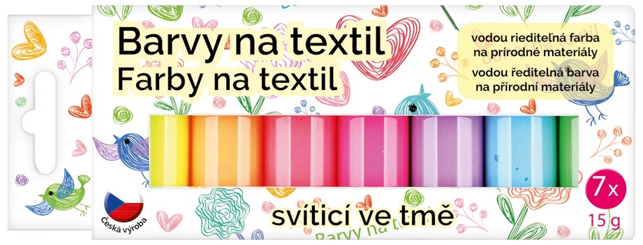 Barvy na textil světlý, sada svítící ve tmě 7 x 15 g + šablony