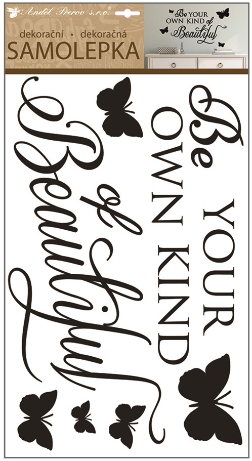 Samolepky na zeď s textem a motýlky 60x32 cm