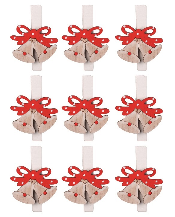 Dřevěné zvonečky na kolíčkuKolíčky využijete k různým dekoračním či aranžérským účelům.Můžete si s nimi ozdobit věnce, vazby, obálky, dárky nebo třeba přáníčka. 9 kusů v sáčku.  prečítať celé
