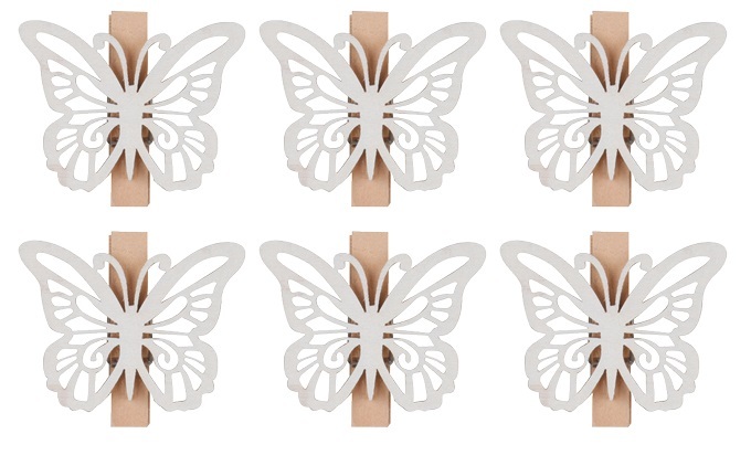 Motýli dřevění na kolíčku 4 cm, 6 ks v balení