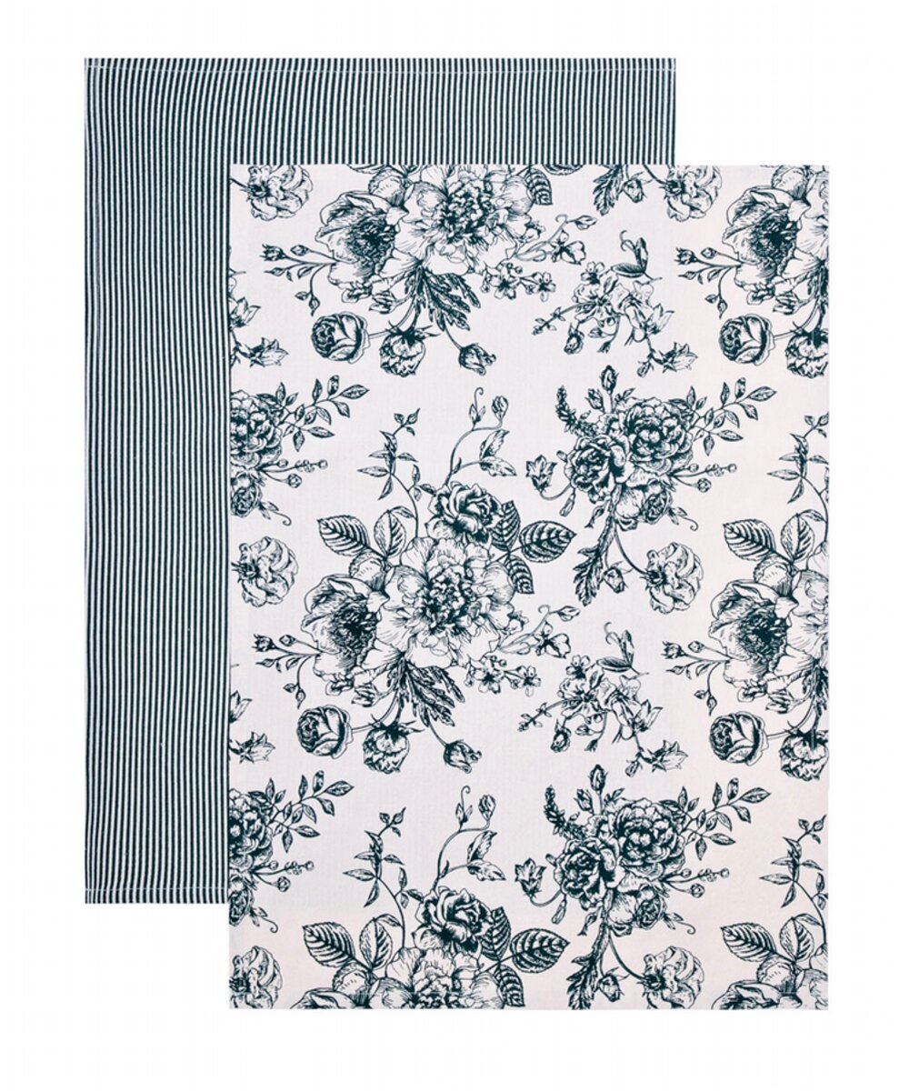 Sada kuchyňských utěrek | NELE | zelenávzor v květech | 2*45x65 cm | 703645 Homla