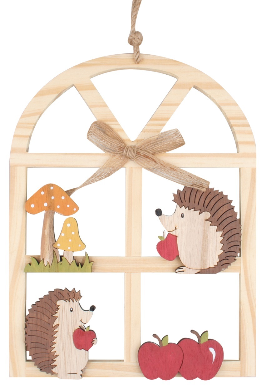 Táto drevená dekorácia v tvare okna zdobená roztomilými ježkami prináša do vášho domova príjemný a útulný pocit jesene. Jej prírodný dizajn skvele ladí s teplými farbami tejto sezóny a oživí akýkoľvek priestor - či ju zavesíte na dvere, položíte na parapet alebo umiestnite na poličku. Vďaka kvalitnému spracovaniu vám bude robiť radosť po mnoho sezón.