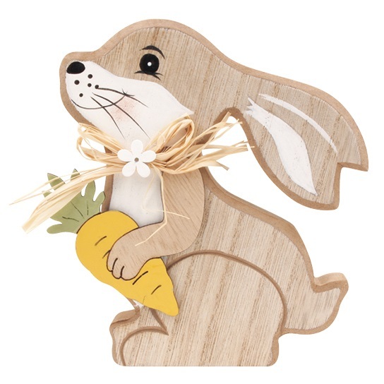 Zajíc dřevěný s mrkvičkou na postavení 14 cm
