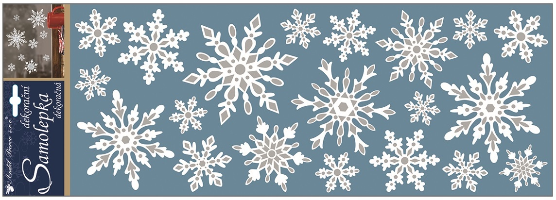 Samolepky bílé s kovovým efektem 57x20 cm, vločky