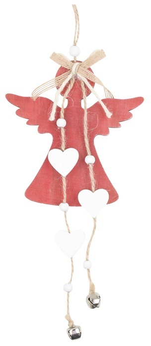 Anděl dřevěný na zavěšení 11 x 25 cm, červený