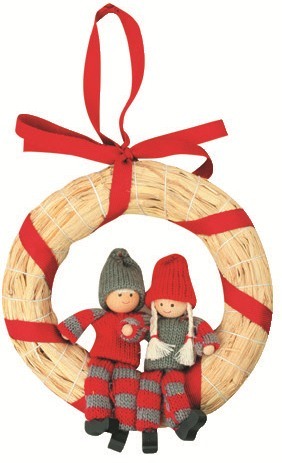 Slaměný věneček s figurkamiPřírodní věneček s postavičkami v pleteném svetříku díky červené stuze snadno zavěsíte na zeď či dveře.Roztomilé postavičky s motivem chlapce a holčičky v přivedou vánoční atmosféru i k vám domů. prečítať celé