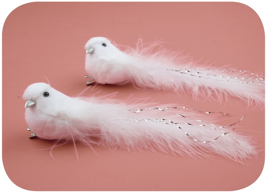 Ptáček plyšový bílý na klipu 2 ks, 14 cm