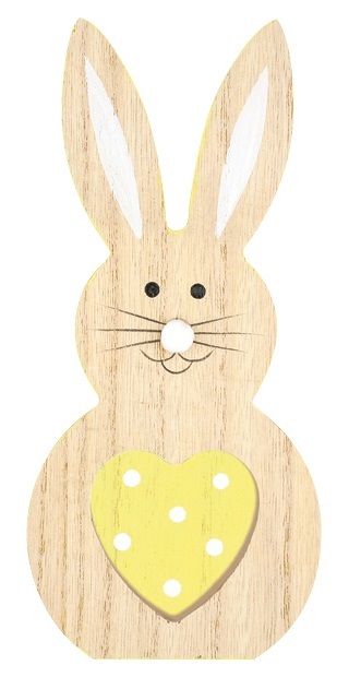 Zajíc dřevěný na postavení se žlutým srdcem 20 cm