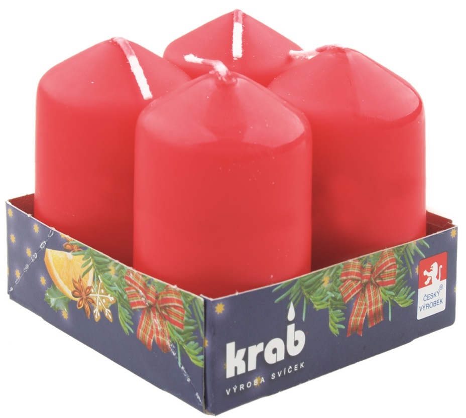 Adventní svíce válec červená 40 x 80 mm, 4 ks v sadě