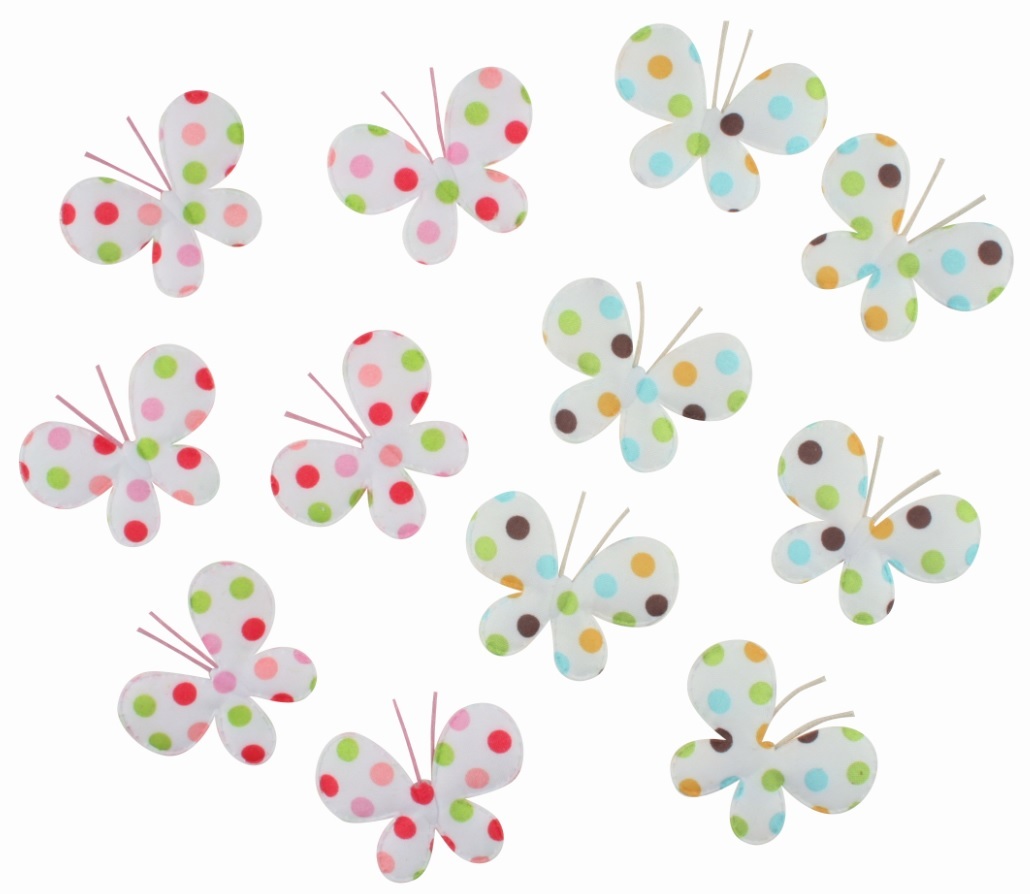 Motýlci z látky s lepíkem s puntíky 4,5 cm, 12 ks