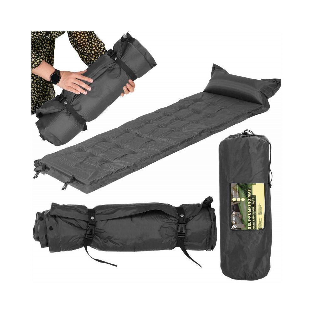 Samonafukovací kempingová podložka s rozměry 193x68x3,5 cm. Speciální polyuretanová vrstva. Snadné používání, nenáročná údržba. Nízká hmotnost, vysoký komfort. Pohodlný polštář, elastické popruhy, šňůrky umožňující zavěšení. Skvělá alternativa k matraci během kempování, výletu do hor nebo na pláž.
