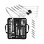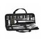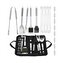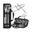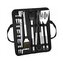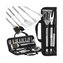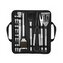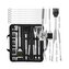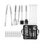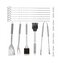 - Sada obsahuje vidlicu, špachtľu, nôž, kefu, kliešte, špízy, pomôcky na kukuricu a kefu na čistenie grilu