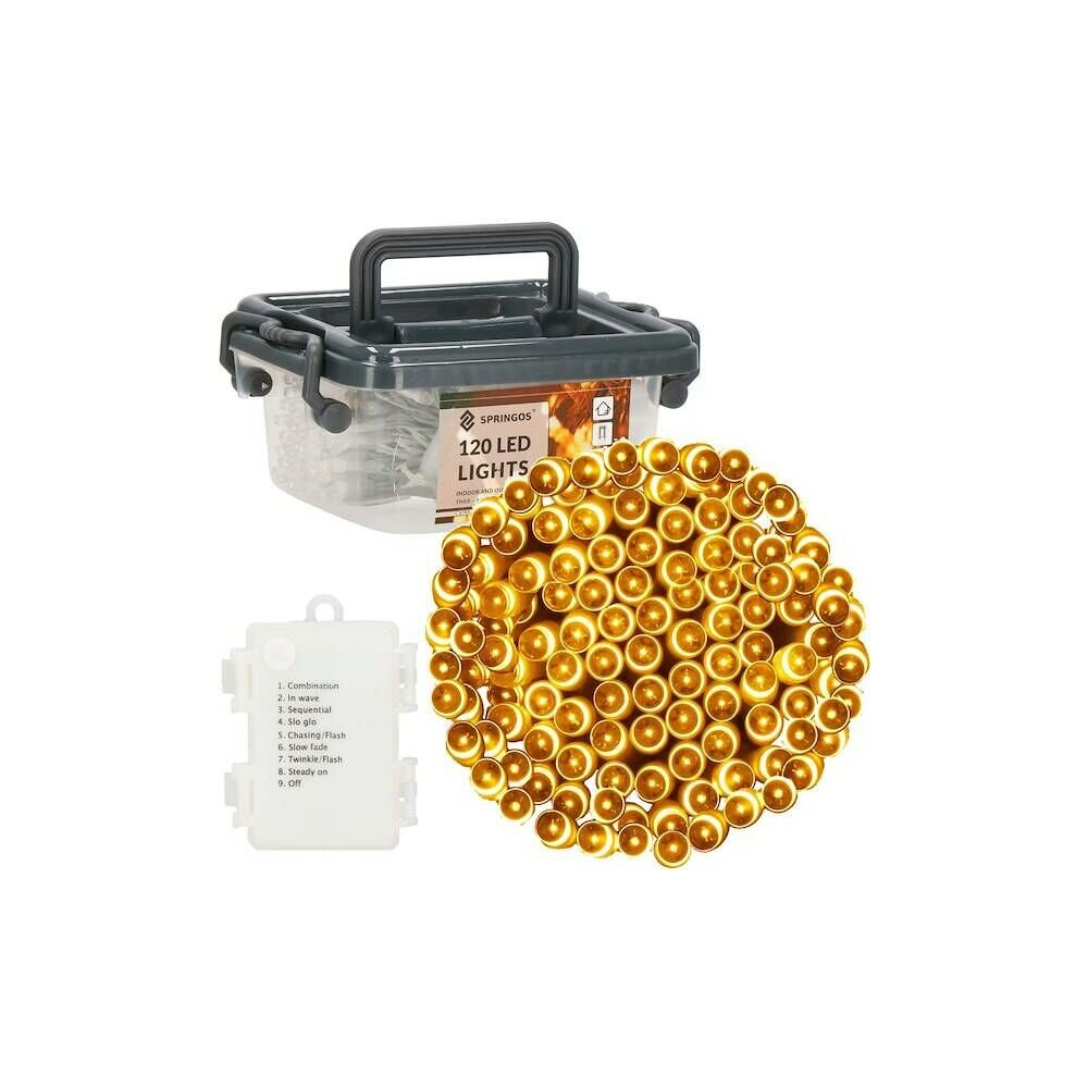 LED světelný řetěz - 9m, 120LED, 8 funkcí, 3xAA, IP44, teplá bílá