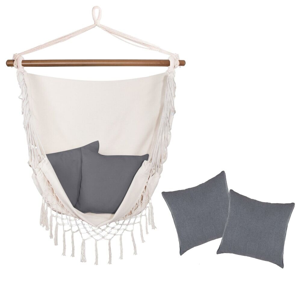 Závěsné houpací křeslo 130x100 cm, šedo-bílé SPRINGOS BORGO II