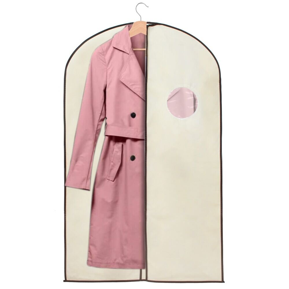 Povlak na oblečení je ideálním doplňkem, který se bude skvěle hodit v šatníku i na cestách. Skvělá ochrana oděvu proti nečistotám, ošoupání nebo vlhkosti. Krémová barva s hnědým lemováním, voděodolné vlastnosti, chránič má zářez pro ramínko, zip a průhledné okénko. Rozměr 130x60cm.