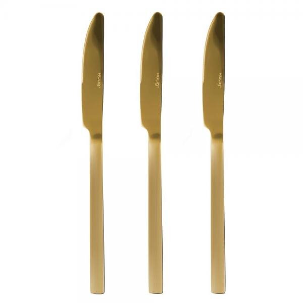 Nůž jídelní:zlatá barva v lesklém provedení,sada 3ks, materiál: nerezová ocel, rozměr: délka: 23,5 cm. prečítať celé