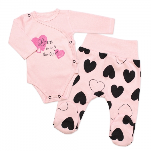 Zavinovací kojenecké body + polodupačky Love 2D, pudrově růžová; 56 (1-2m)