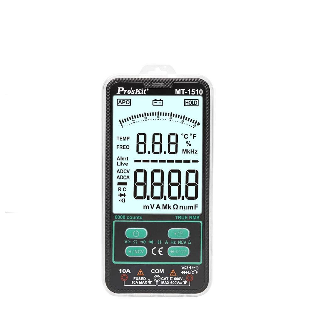 Univerzální digitální multimetr s automatickým rozsahem a velkým přehlendým displejem.Funkce:Napětí DC: 6V/60V/600V +-0,8%Napětí AC: 6V/60V/600V +-0.8%Proud DC: 1000mA/10A +-2%Proud AC: 1000mA/10A +-2%Odpor: 600Ohm/6kOhm/60kOhm/600kOhm/6MOhm/60MOhm +-1%Kapacita: 6nF/60nF/600nF/6uF/60uF/600uF/6mF...