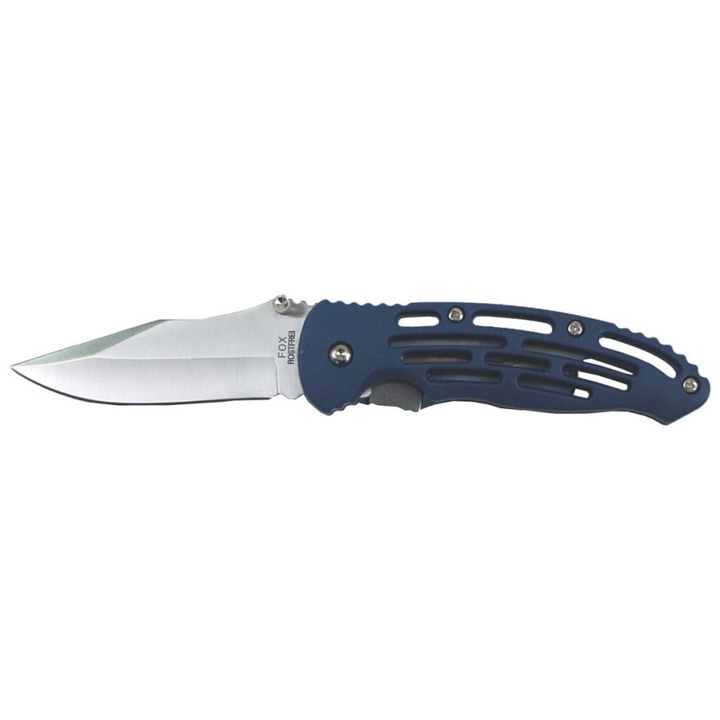 Zavírací nůž s drážkovanou štěrbinovou střenkou modré barvy.Dá se otvírat jednou rukou. prečítať celé