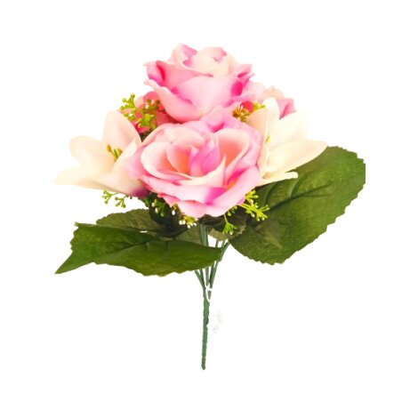 růže kytice x7 stonků (4x růže + 3x lilie), výška 32 cm; květ cca 9 cm prečítať celé