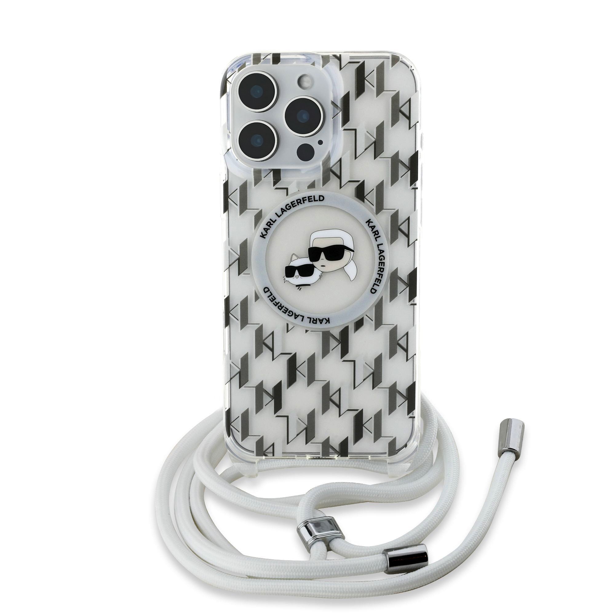 Karl Lagerfeld IML Monogram Crossbody K&CH Heads MagSafe Zadní Kryt pro iPhone 16 Pro Max Transparent