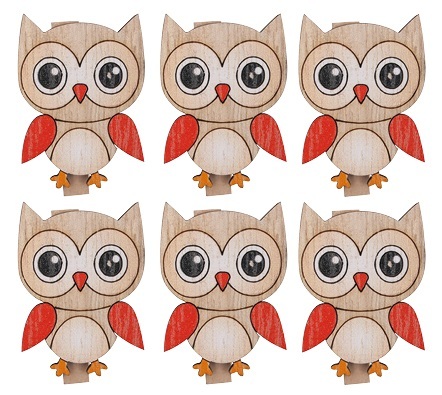 Sovy dřevěné na kolíčku 4 cm, 6 ks