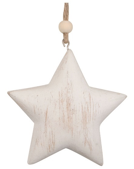 Dřevěná hvězda na zavěšení s patinou šedá 9 cm