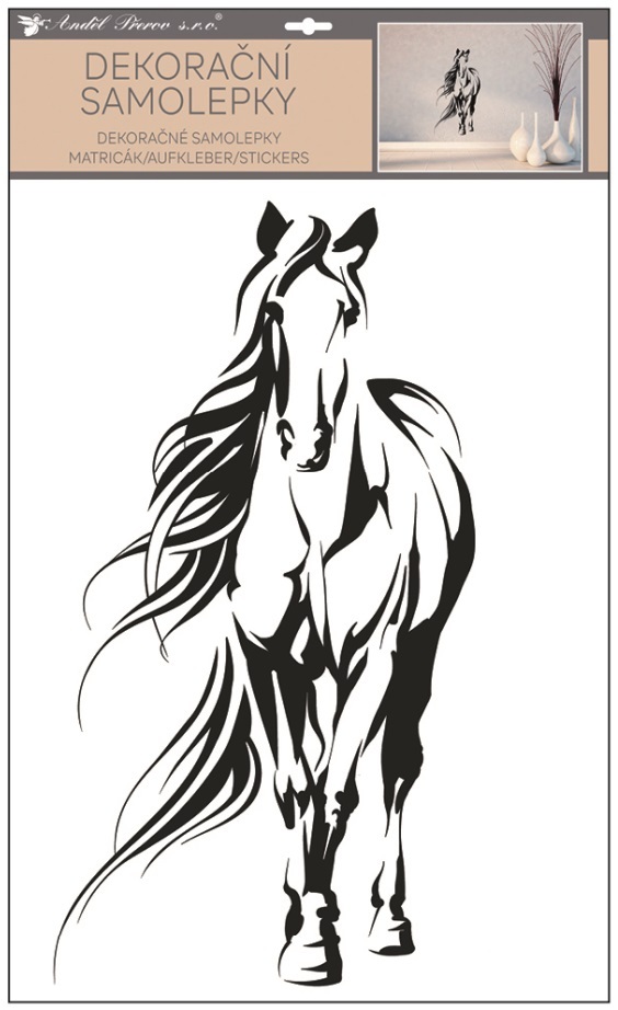 Pokojová samolepka kůňPřemýšlíte jak snadno a rychle ozdobit prázdnou zeď či jinou hladkou plochu? Použijte k tomu pokojovou samolepku!Použití: Samolepku opatrně sloupněte z podkladového papíru. Přilepte na vámi zvolený hladký a čistý povrch. Uhlaďte od středu ke krajům.  prečítať celé