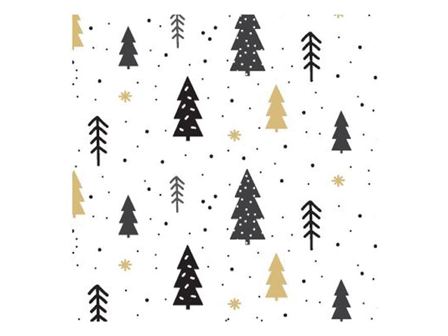 Papírový vánoční ubrousek v bílé barvě. Ubrousek je kvalitní z třívrstvého papíru s motivem černých a zlatých stromečků. Vytvořeni decentní vánoční atmosféry stojí na maličkostech. I taková drobnost, jako vánoční ubrousky změní ráz vašeho stolování.